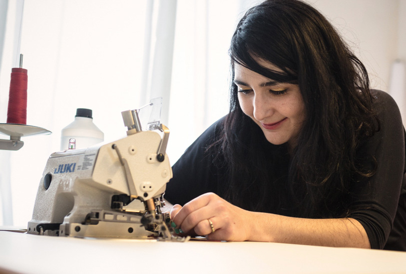“Ik ben nooit meegegaan in de doe-het-zelftrend. Ik wou meteen een professioneel atelier beginnen met industriële snij- en naaimachines. Ik streef naar eenvoudige, elegante ontwerpen die ik relatief snel kan maken.