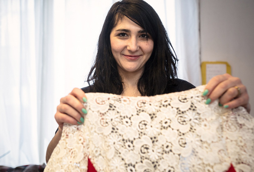 “Ik ga graag met mensen om, dus workshops organiseren neem ik er graag bij. Het stimuleert mijn creativiteit. De workshops betalen mijn rekeningen, maar als ik er te veel tijd aan besteed, verwaarloos ik mijn kledinglijn. Het is voortdurend schipperen tussen doen wat ik graag doe en doen wat noodzakelijk is.”