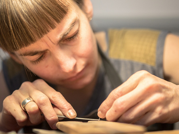 Caroline: “We hoopten op een opstartperiode van twee jaar, maar nu blijkt dat we wat meer tijd nodig hebben. Ik verkoop mijn werk via Facebook, Talent in de buurt en Wunderkammer. Het zijn vooral ‘algemene’ dingen. Mensen die iets persoonlijker willen - zoals trouwringen - komen naar mijn atelier.”