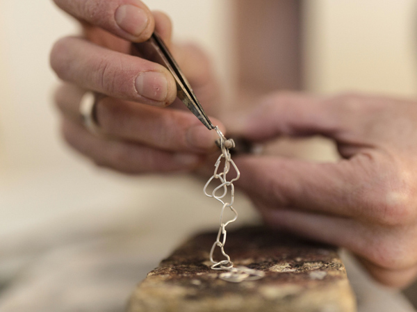 Caroline: “Voorlopig doen we ‘Iets met zilver’ en ‘Iets met hout’. Aan ‘Iets met zilver én hout’ zijn we nog niet toe. We geven elkaar wel advies, wat aanstekelijk werkt. De concurrentie tussen juwelenmakers is enorm. Je moet je eigen stijl vinden, je onderscheiden. Dat onderscheid zit ‘m niet alleen in het creatieve, maar ook in de materialen en het unieke.”