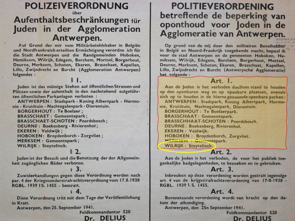 In september van dat jaar zijn de parken, cinema’s en theaters verboden terrein voor joden. Joden die zich met de tram willen verplaatsen, mogen enkel plaats nemen op het platform aan de aanhangwagen. Openbare badgelegenheden zijn eveneens verboden terrein.