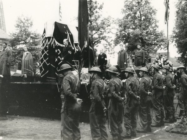 WILRIJK | In mei 1945 krijgen de twaalf gesneuvelde verzetsstrijders van de Wilrijkse Groep G - sector 53, een staatsbegrafenis op de Bist, omringd door hoogwaardigheidsbekleders, officiële afvaardigingen en Engelse militairen. Hun foto’s staan opgesteld in de hal van het gemeentehuis. Het weer zit niet mee, maar ondanks de druilerige regen woont een massa volk de plechtigheid bij. Na afloop worden de gesneuvelden begraven langs de erelaan van de begraafplaats aan de Jules Moretuslei. Nadat de begraafplaats in 1967 officieel sluit, worden ze ontgraven en overgebracht naar het militaire ereperk van de begraafplaats Steytelinck.
