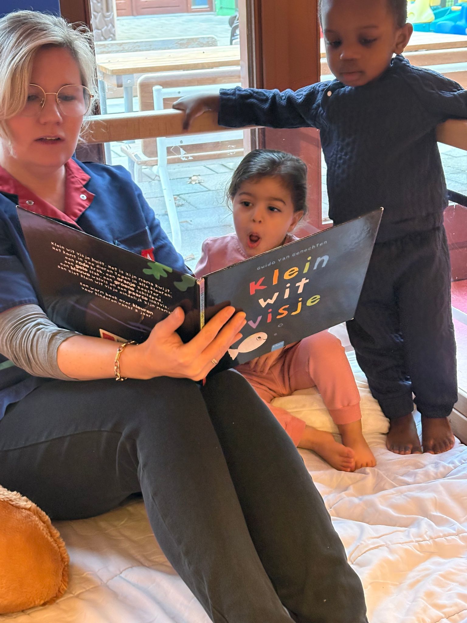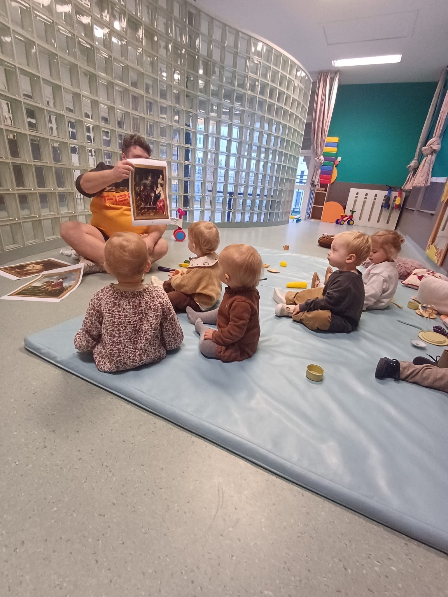 De foto's in onze mailbox tonen heel wat verschillende en unieke voorleesmomenten. Zo bracht een ouder op een erg fijne manier cultuur binnen in een kinderopvanglocatie: voorlezen aan de hand van foto's van kunstwerken.