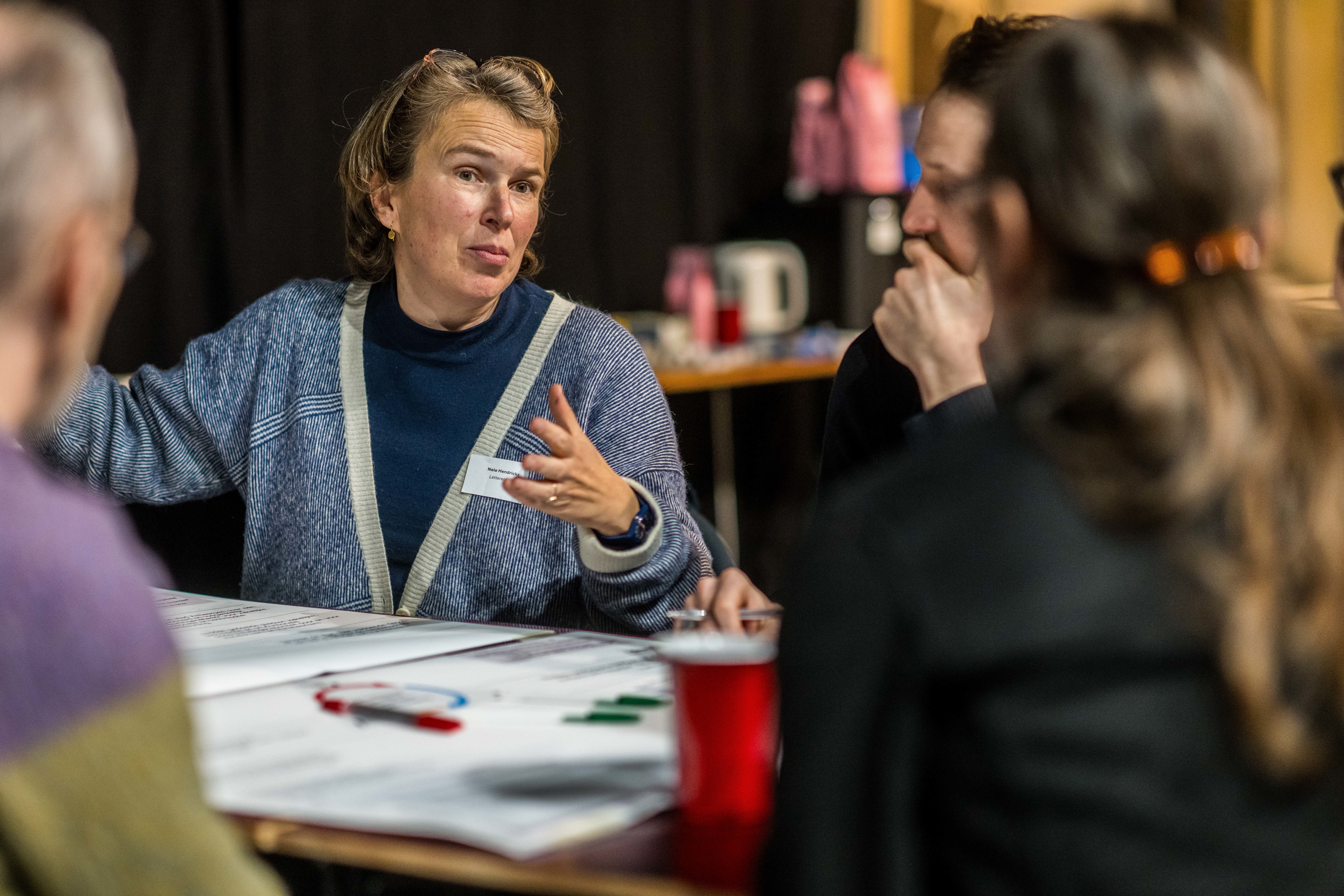 Karen Vandenberghe, coördinator kunstenbeleid bij stad Antwerpen, bedankte de meer dan 60 aanwezigen voor de talrijke opkomst. Daarna gaven Joris en Tille een korte recap van de survey die vorig jaar werd gehouden. Vervolgens gingen de aanwezigen aan de slag in een World Café, met keuze uit negen thematafels.