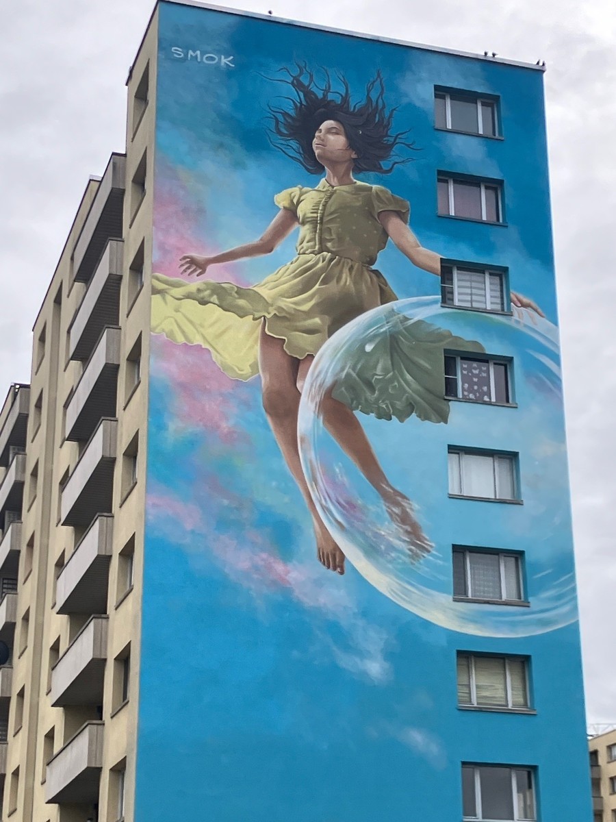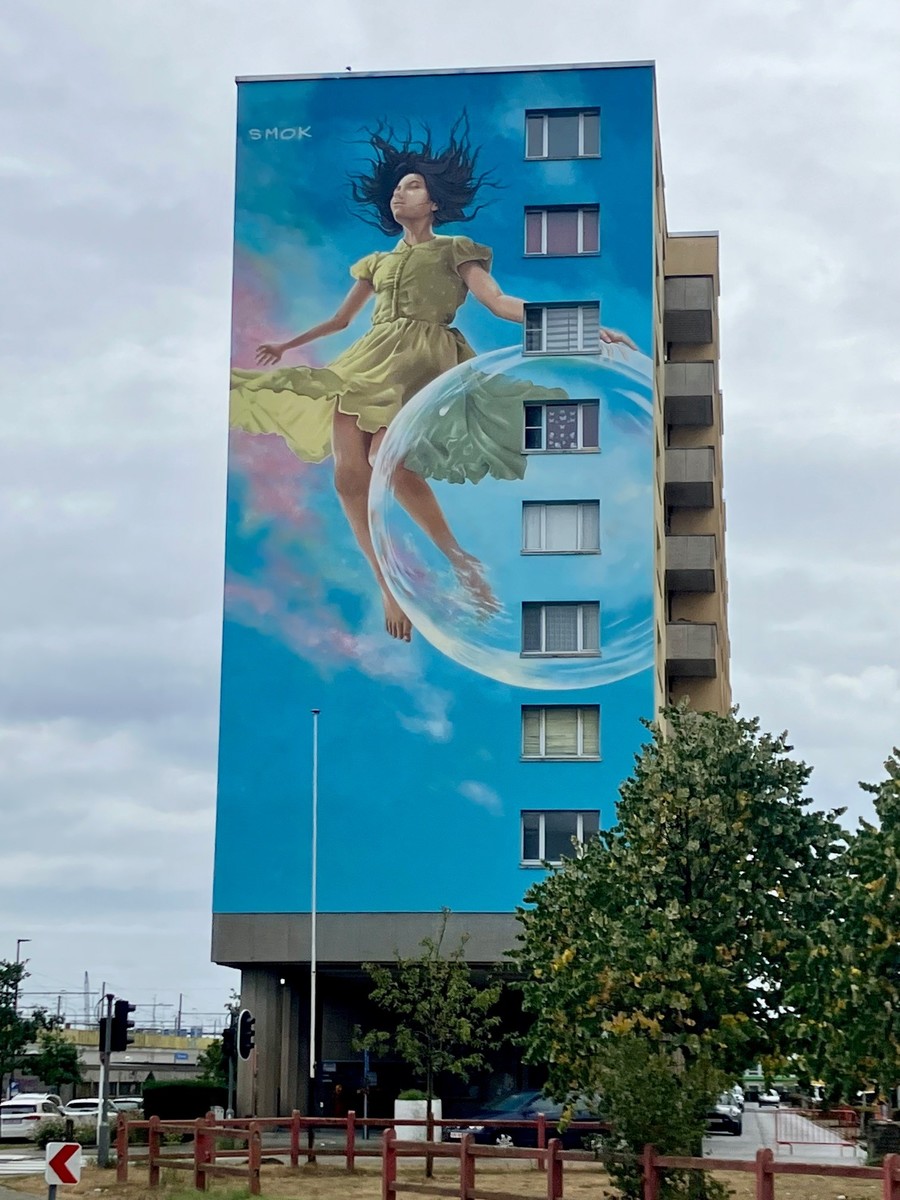 De bekende Antwerpse streetartkunstenaar Bart Boudewijns, alias SMOK, werd uitgenodigd om deze grote muurschildering uit te werken. SMOK werd gekozen na een zorgvuldige selectie door zowel het district, Woonhaven en BLOC2030 op basis van zijn artistieke kwaliteiten en ervaring met gelijkaardige projecten.