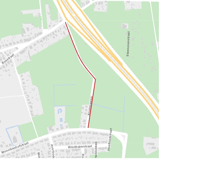 Het fietspad in de Monnikenhofstraat vanaf de Hoefbladstraat tot het Oud Broek en een gedeelte van het fietspad van de Krommeweg, worden geasfalteerd in de week van 2 maart.